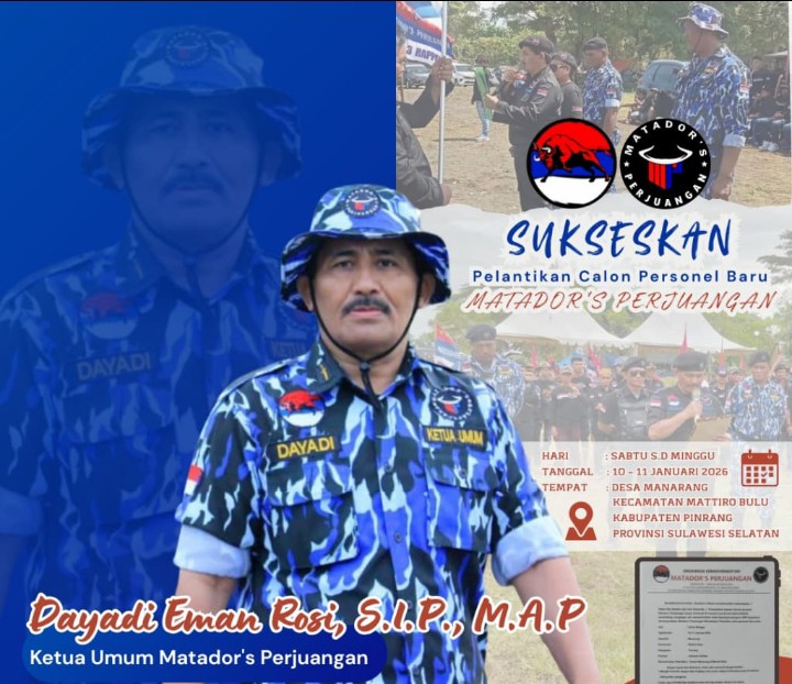 Lebih lanjut, Bang Eman menjelaskan bahwa Matador’s Perjuangan memosisikan diri sebagai agen perubahan, kekuatan moral, dan kontrol sosial yang mendukung kebijakan pemerintah selama berpihak pada kepentingan masyarakat luas. Peran tersebut, menurutnya, hanya dapat dijalankan oleh kader yang memiliki integritas dan kedisiplinan tinggi.